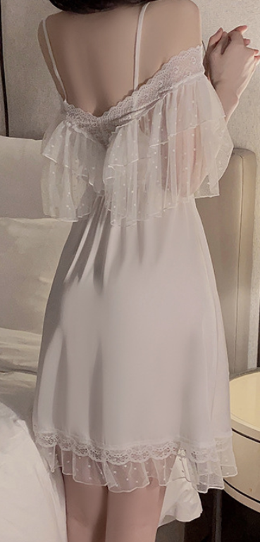 Elegant White Off-Shoulder Lace Nightdress – SKU# 81